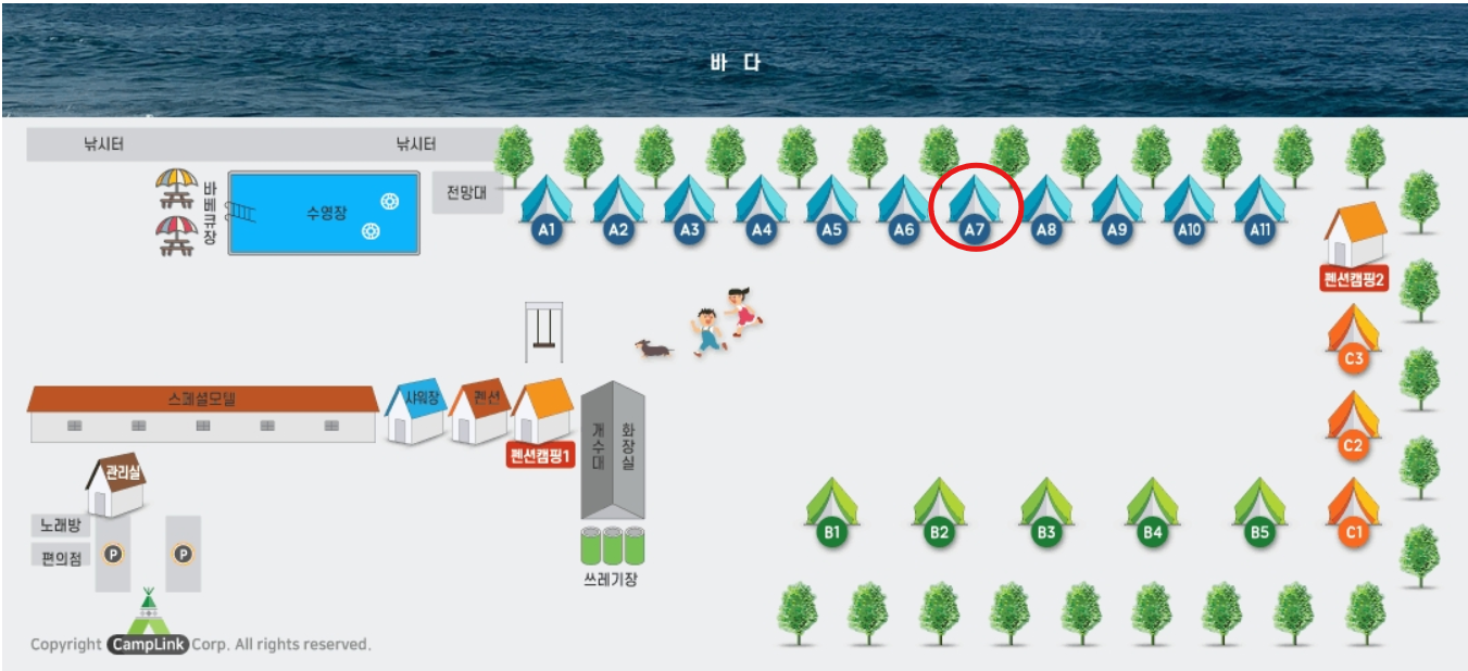 도착했을 땐 캠핑장을 보며 "여기가 모텔인가요?"하고 웃었지만, 캠핑장은 바로 옆 바다뷰 명당에 자리 잡고 있었답니다! 🏕️🌟